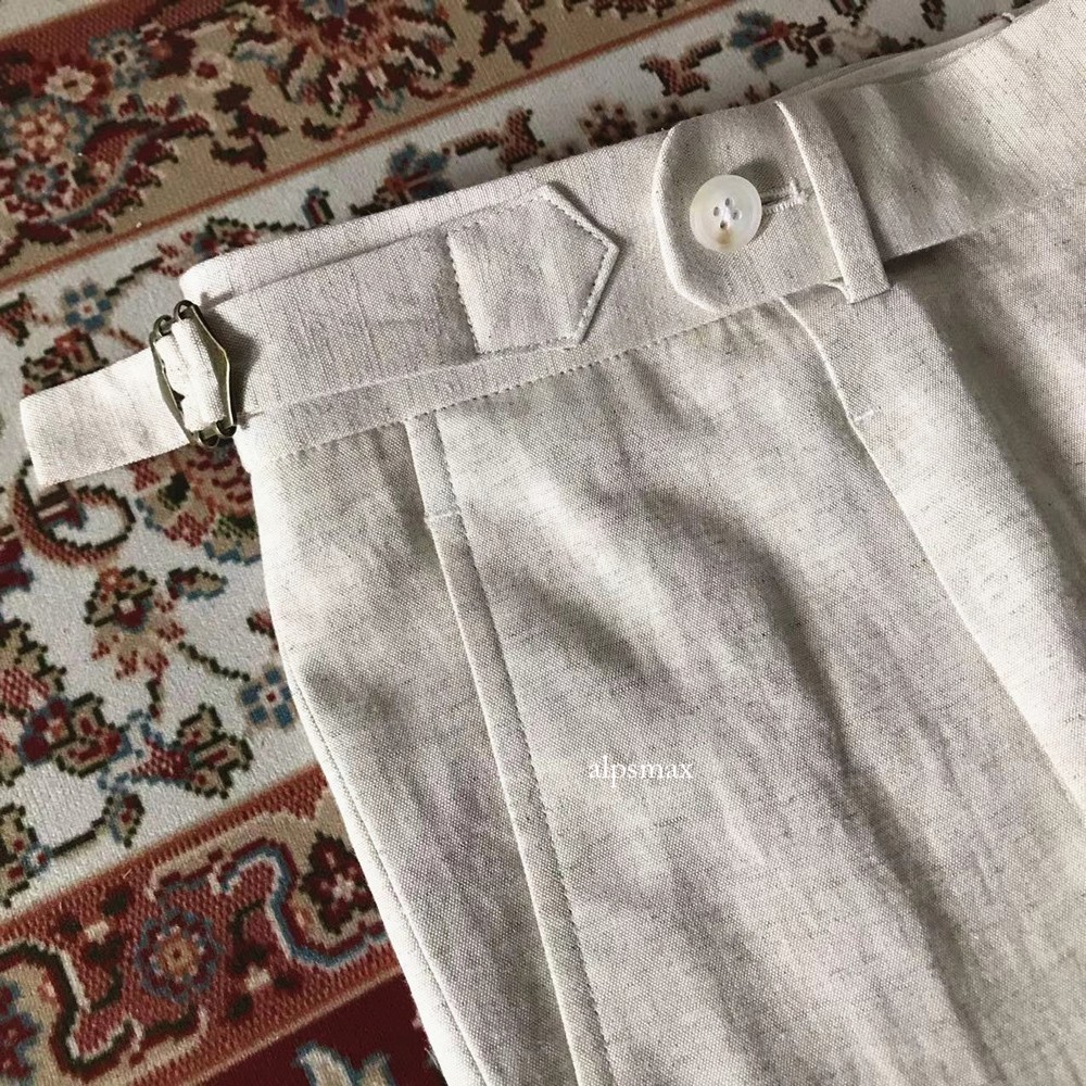 $ 51.73Men's Beige Linen Gurkha Pants with Adjustable Waist Straight Fit Trousers