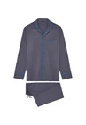 Details From the Ramatuelle Collection. Patterned button-up top with comfortable drawstring pants. 100% cotton. Machine wash. Imported. SHIRT Camp collar Plain Navy Blue Color XXL Size Long sleeves Button front Chest patch pocket PANTS Drawstring waist Side pockets