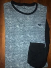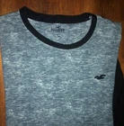 Men's Hollister long sleeve crew neck t-shirt: Size Large All cotton Heather blue with navy trim Logo on the chest Navy sleeves Measures 22x29 Smoke free home! I take health and hygiene very seriously! On top of my normally-exceptional hygienic measures, I am wearing a fresh pair of disposable gloves for every order. There is no price too small to help keep everyone healthy!