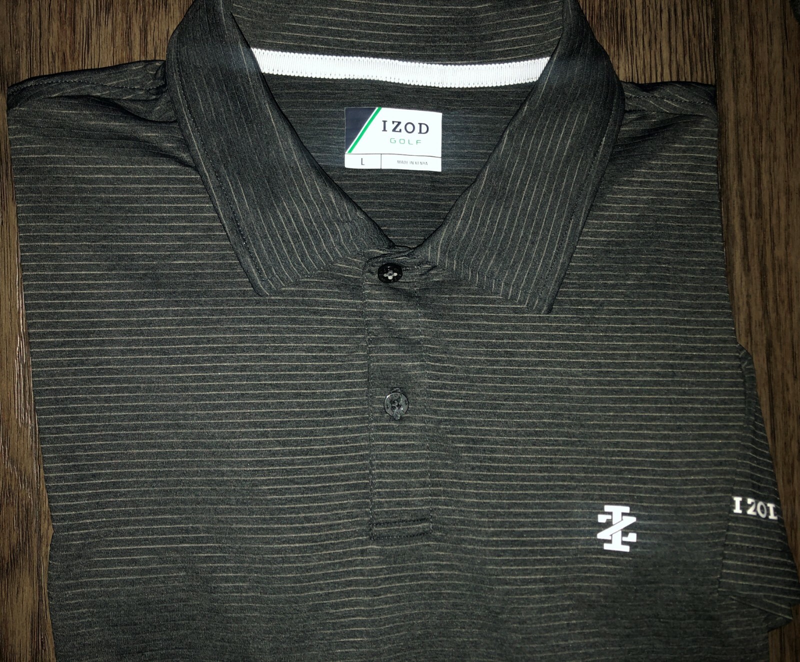 Mens Izod Golf Short Sleeve Gray Striped Polo Shirt Size Large 93-7 polyester/spandex blend Great looking gray polo with horizontal thin stripes Izod logo on chest and sleeve Measures 24x31 Excellent used condition VERY NICE SHIRT FROM SMOKE FREE HOME. FAST SHIPPING WITH TRACKING INFORMATION PROVIDED.