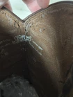 Great boots with a lot of life left in them. Overall, they look very good on the outside. There is a little flaking on the inside. The size has been worn off. However, measuring the inside of the foot bed is 11 inches which actually translates to a man's size 11.