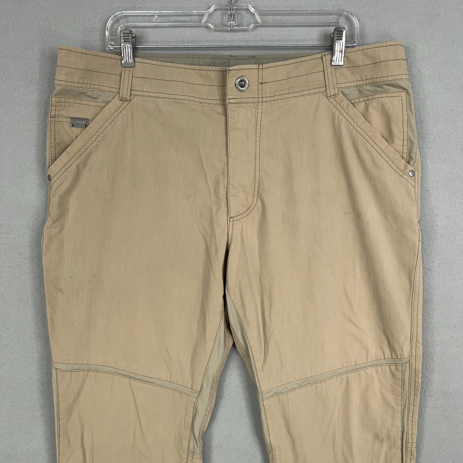 Kuhl Pants Mens 38x32 Khaki Beige Free Radikl Enduro Stretch Hiking Outdoor Gorp Condition: Good used condition with light wear and several faint small marks and light discolorations on both front and back thighs as shown in photos. No holes or structural damage. Size on tag: 38x32 (Mens). Style Name: Free Radikl, Style 5170, Enduro fabric Classic straight leg outdoor hiking and travel pants with lightweight stretch performance See all photos for close-ups and condition detail Measurements: - Previous washings may change the sizing written on the tag. - Please refer to the photos above for all measurements. - Please compare our measurements to that of one of your favorite garments. - Please note, item measurements are approximate . All items are bagged and sealed after being photographed, then stored in a smoke free environment to ensure the item is exactly the same as when photographed. All items have been washed per eBay standards & policies. I carefully package and ship daily. Feel free to contact me with any questions.
