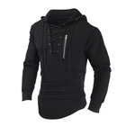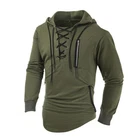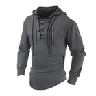 Mens Lace Up Hooded T-Shirt Tops Long Sleeve Sports Casual Muscle Slim Shirts