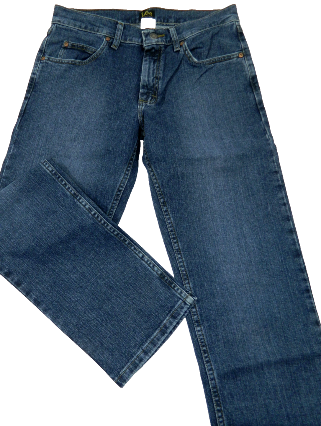 New with Tags pair of Lee Brand Patriot 2008900 Regular Fit Straight Leg Stretch Denim Blue Jeans. Tag Size: 31x32. Measured in inches: Waist: 15.5, Inseam: 32, Front Rise: 10.5, Leg Opening: 7.5. Worn slightly below the waist. 99% Cotton 1% Elastane. The factory retail tag is missing, everything on it is on the other tags. BWO6