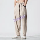 $ 22.34Men's Cotton Linen Harem Pants Elastic Waist Breathable Kung Fu Casual Trousers