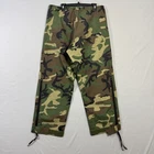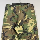 Trousers Cold Weather Camouflage Pants Mens Medium Regular Camo Nylon Adventure Tech Condition: Good used condition with moderate wear, some visible discoloration and marks on fabric as pictured Shell material: 100% nylon Tag size: Medium Regular (Fits waist 31-36 in, inseam 29.5-32.5 in) Style: Overpants/trousers for cold weather, woodland camouflage pattern Features: Large angled front pockets with flaps, drawstring waist, full zip openings along both legs, hook and loop ankle tabs, drawcord hems Stock No: 8415-01-228-1346 SP0100-04-C-4224, Adventure Tech, Inc. Made for layering in cold weather environments, classic US military ECWCS (Extended Cold Weather Clothing System) outer shell pants Machine wash, do not starch, bleach, dry clean, or press, see care tag for details Great for outdoor activities, hunting, or military surplus collectors