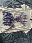 This mens Y2K streetwear shirt by M & M features a graphic design on comfortable fabric. The shirt is designed with a designer theme and is a size medium, making it suitable for everyday wear. Perfect for men looking to add a stylish and trendy piece to their wardrobe, this T-shirt combines both comfort and fashion in its design.