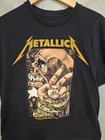 This pre-owned shirt has no rips, tears, snags, stretching, holes, or stains. We have included photos of the width across the chest and from the back of the collar to the bottom of the shirt. The shirt is size XL, black, 100% Cotton, and manufactured in Honduras. The brand is Wear-Ever I May Roam. Please do not hesitate to contact us with any questions. 0086