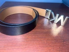 This is a men's Michael Kors belt in black or brown, featuring the brand's signature logo accents. The belt is made of leather, with a size range from 30" to 41" and a classic designer style suitable for both dressy and casual outfits. It is a preowned item with two sides, perfect for adding a touch of sophistication to any wardrobe.