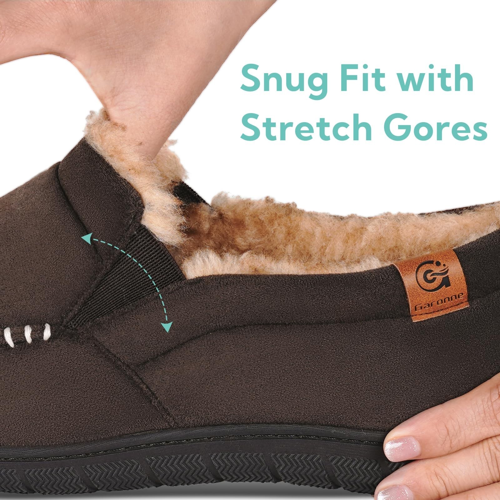 Refined Closed-Back Design – A modern reinterpretation of the classic moccasin. The minimalist closed-back silhouette, enhanced with dual elastic gores, offers a flexible fit and secure wrap for all-day comfort. Plush Fuzzy Lining – Thick, soft lining envelops your feet in lasting warmth and softness, perfect for chilly winter mornings or relaxed evenings at home. (Kind reminder: Minor fluff shedding may happen in the beginning, a normal feature of thick plush lining that does not impact long-term use.) Pressure-Relieving Memory Foam – High-density memory foam cushions every step, molding to your foot’s shape to ease pressure and reduce fatigue. Non-Slip Rubber Outsole – Durable rubber with deep grooves delivers steady traction on hardwood, tile, or paved surfaces for reliable indoor/outdoor wear. Every Garonne slipper undergoes 17 quality checkpoints — from fiber tensile tests to sole abrasion trials. We reject 23% of raw materials to ensure your pair withstands 500+ wears.