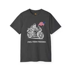Experience comfort and style on the road with our Men Bike Racing Graphic Tee. Made with ultra-Cotton material, this tee provides superior comfort for long rides. The special graphic design adds a touch of personality to your cycling gear. Perfect for any race or casual ride. Overview: This ultra cotton tee is a classic. Quality cotton construction means that designs are sure to shine. The shoulders are tapped for a good upper body fit. There are no side seams, ensuring a clean, unbroken flow. The collar has ribbed knitting for improved elasticity. The materials that went into this product are sustainably sourced and economically friendly. Fabric: This tee is an excellent, all-season wear thanks to its medium fabric (6.0 oz/yd² (203 g/m²)). Made with 100% US cotton, this tee guarantees long-lasting comfort and style Fit: The classic fit along with the crew neckline make it a highly versatile choice for casual and semi-formal occasions as its neat, clean looks can blend in any setting and are perfect for accessorizing. Fabric Blends: Ash Grey - 99% cotton, 1% polyester, Heather Colors & Safety Colors - 50% cotton, 50% polyester, Antique Colors & Sport Grey - 90% cotton, 10% polyester
