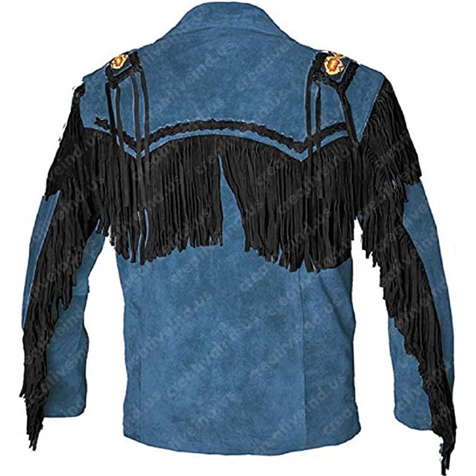 Men's Western Suede Leather Jacket Native American Fringe Cowboy Jacket Buckskin Festival Wear Embrace timeless cowboy charm with this Men's Suede Western Fringe Jacket , expertly designed for those who love vintage western fashion. Made from high-quality suede leather , this piece showcases bold fringe detailing that highlight its rugged, frontier-inspired aesthetic. The earthy color gives this jacket a natural, versatile look – making it ideal for country concerts, rodeos, themed events, or simply adding rustic flair to your casual wardrobe. With intricate braided stitching and practical zip-up closure, this is a wardrobe essential for every western wear enthusiast. 🔹 Product Features: · Color: Blue & Black · Material: Suede Leather · Design: Western fringe on shoulders, chest, sleeves, and back · Fit: True to size – Regular fit · Style: Western, Rodeo, Cowboy, Vintage Americana · Ideal for: Country music festivals, western-themed events, cosplay 🔸 Care Instructions: · Dry clean only · Store in a cool, dry place · Avoid contact with water and oils to preserve suede finish 🔑 Size & Fit Notes: Please refer to our detailed size chart (included in photos) for chest, shoulder, and sleeve measurements. Runs true to size — For a looser vintage look, consider sizing up. CUSTOM ORDERS If you have your own design of JACKET, please let us know we can do customization. SHIPPING POLICY We Offer Fast Shipping Services at Cheap Prices. We ship to your address. Please make sure your address is correct before you pay. Item will be shipped within Handling days when we received payment. Delivery time depends on destination and other factors. Standard Shipping Takes 7-12 Days DHL Shipping Takes 5-7 Days NOTE FOR INTERNATIONAL BUYERS Import duties, taxes and charges are not included in the item price or shipping charges. These charges are buyer’s responsibility. we will try our best to reduce the risk of the custom duties PAYMENT POLICY We accept all Ebay Payment Methods All major credit cards are accepted. Payment must be clear within Handling time of product. RETURN POLICY We have 30 Days of Return Policy. If you would like to return or exchange this, please return this in the same condition within 30 days of buy, once it will receive by us, money will be refunded. Contact us before opening the request . Let us know with the defect or discrepancy of knife within 7 days of delivery FEEDBACK REQUEST If you find any defect or wrong item, please let us know before leaving negative feedback we must resolve your issue. And if you find right product what you are expecting then your positive feedback motivates us. Thanks