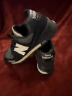 The product is a men's New Balance 574 sneaker in size 12, featuring a rugged design in black and white colors. The style code ML574DBH indicates it is part of the New Balance 574 model line. This athletic shoe from New Balance combines functionality with a colorful theme, making it a versatile and stylish option for everyday wear.