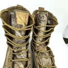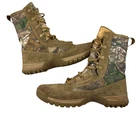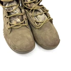 The Men's Nike SFB Field RealTree 8” Coyote 845167-990 Hunting Hiking Boots in size 10.5 feature a brown camouflage pattern and a round toe shape. These lace-up combat boots are designed for outdoor activities like hunting and hiking, with a mid-calf shoe shaft style and rubber outsole for traction. The boots are lightweight, cushioned, and breathable, offering comfort and adjustability for all-day wear in various seasons. Made with a combination of suede leather and textile upper materials, they are part of the Nike SFB product line and are suitable for travel, activewear, and casual wear. Pristine condition! Minimal signs of wear. The most notable is the very slight red marks on the toe. Freshly washed & cleaned ready to wear!