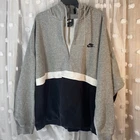 Elevate your sportswear game with this Men's Nike Sportswear Club Fleece 1/2 Zip Hoodie in Black, Gray, and White. Made with a comfortable cotton blend fleece material, this hoodie features a stylish 1/2 zip design and Nike branding on the front. Perfect for any casual occasion, this hoodie is available in size 3XL and is a regular fit for men. The gray and black color scheme makes it easy to pair with any outfit, while the Nike Sportswear product line ensures quality and style.(c64)
