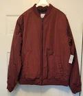 Add a stylish touch to your wardrobe with this maroon Old Navy bomber jacket in size XL. The polyester outer shell and lining material make it both durable and comfortable to wear. The jacket features a full zip closure with additional snap buttons, and a zipped pocket. Perfect for the changing seasons, this jacket is water-resistant and suitable for winter, fall, and spring. It has a regular fit and is machine washable for easy care. Whether you're out for a casual walk or running errands, this bomber jacket is the perfect addition to your outfit. Brand new with tag!