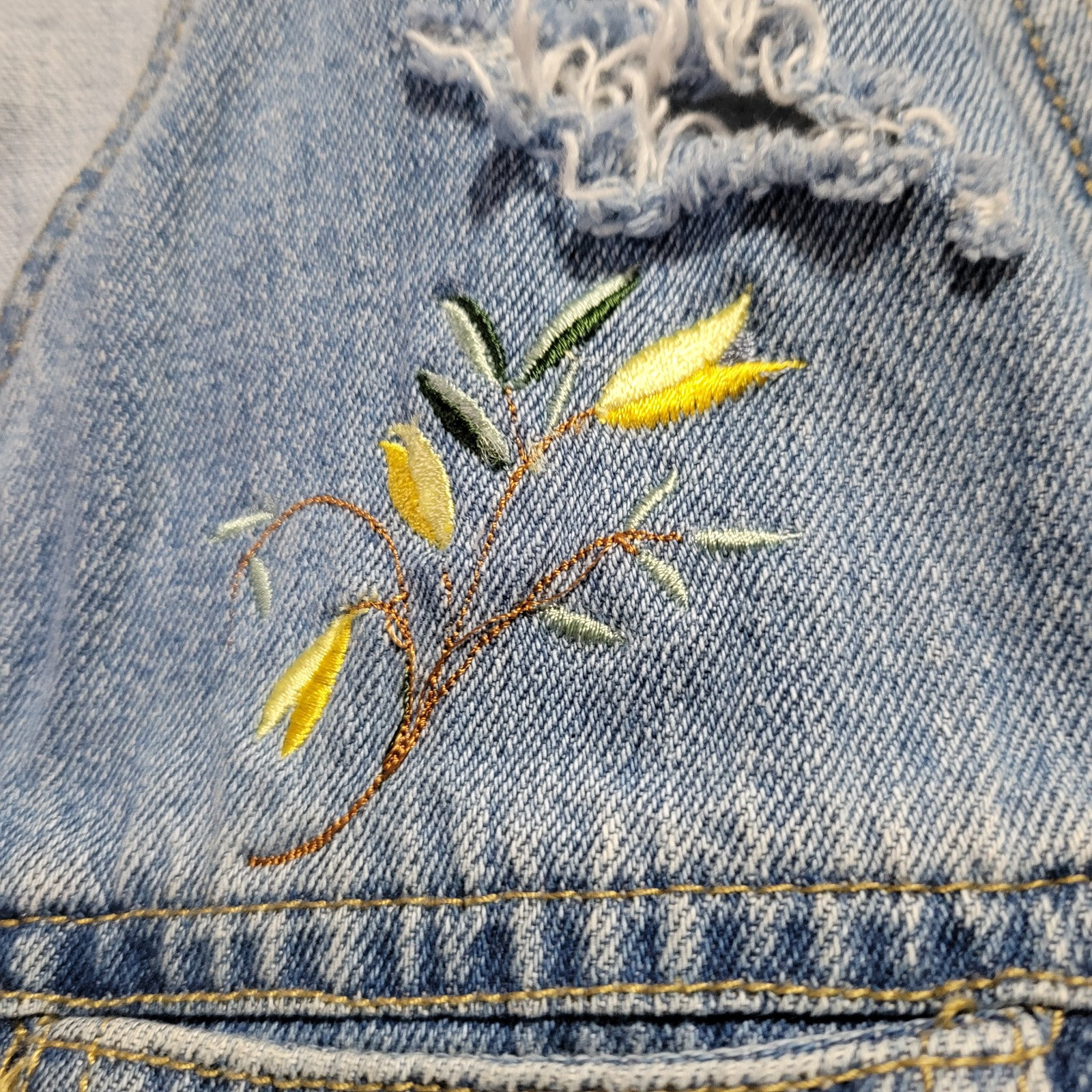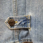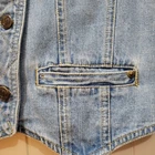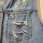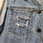 Great distressed denim vest. Pockets, embroidery, buttons on back to adjust fit. 19" pit to pit 22" long