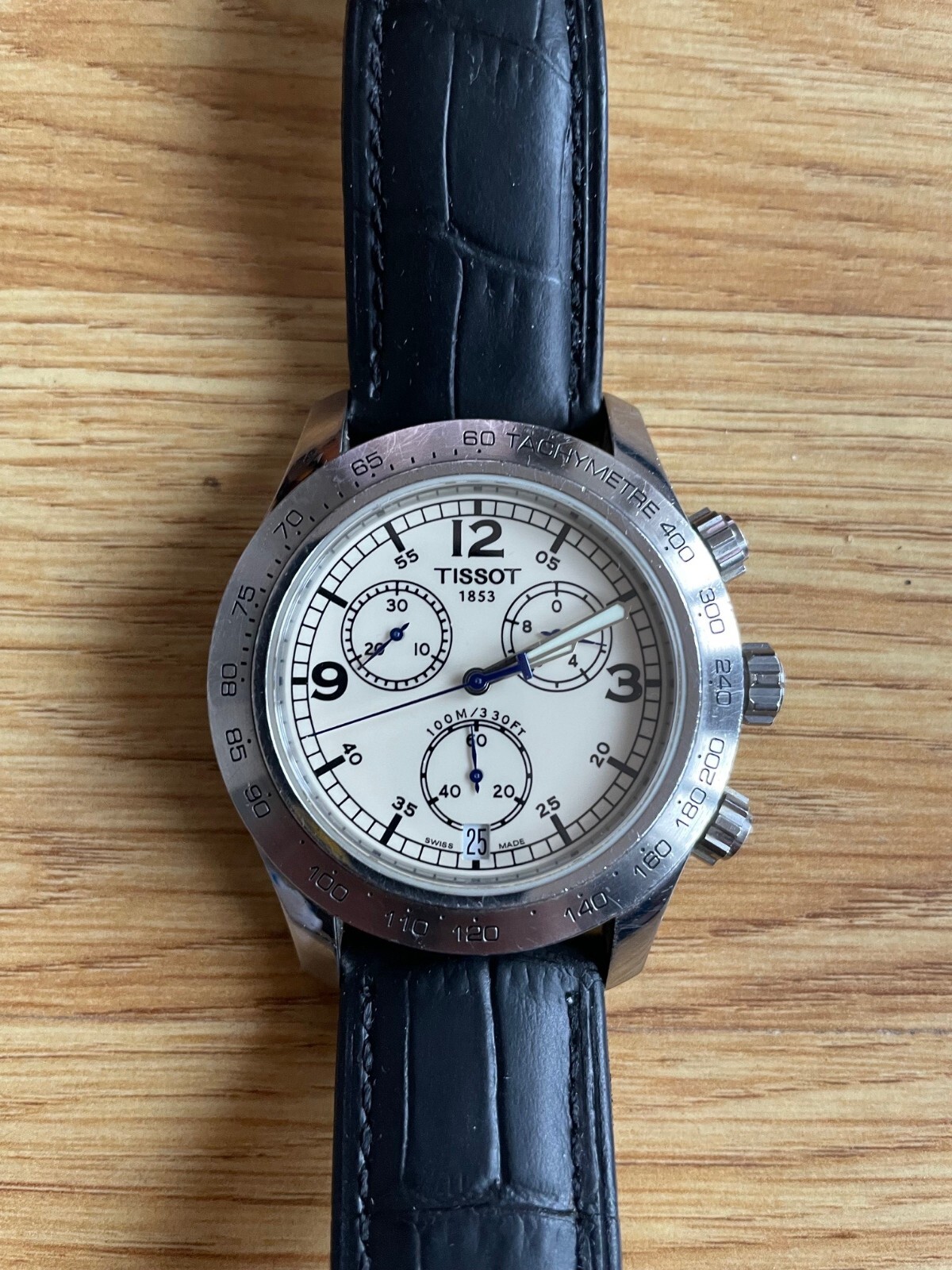 TISSOT V8 CHRONOGRAPH NEW BATTERY NEW BLACK LEATHER STRAP IN ORIGINAL BOX WITH MANUALS