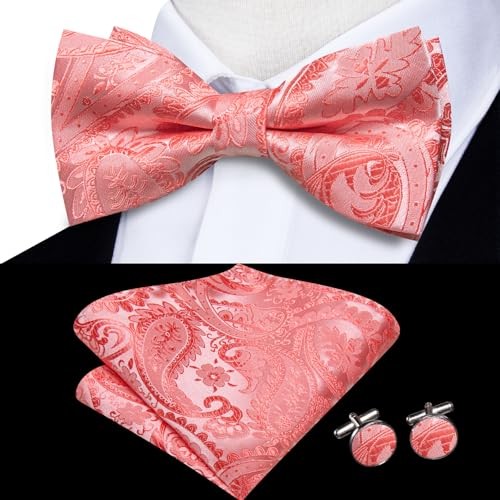 $ 10.02Men's Pre-Tied Bow Tie Set with Paisley Floral Pocket Square & Lapel Pin
