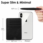 Product Description Light and Portable - Stores your carry-on essentials such as money, id cards and credit cards in a slim and lightweight front pocket wallet. Get rid of the bulky purse from now! About this item LIGHTWEIGHT & SLIM : Measuring only 4.72" x 3.35" x 0.4". It's the thin wallet that convenient to be carried around in your pocket, purse or travel pack SPACE DESIGN : It features 7 Credit card slots; 1 finger glide transparent window for ID/driving license and 1 money pocket for cash, receipt or bills EASIER TO TAKE THE CARD : Two wide card slots with thumb openings make it easier to slide the often accessed cards SECURE DESIGN : The card wallet sleeve is equipped with advanced RFID Blocking Technology; protects your valuable information stored on chips from unauthorized scans when traveling, shopping or exploring IDEAL GIFT : Built from premium composition leather - durable, sleek, functional & unisex design, is a great gift for your lover, family member or friends.