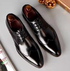 Men's Brogue Oxford Shoes Business Formal Zipper Cowhide Carved Leather Shoes