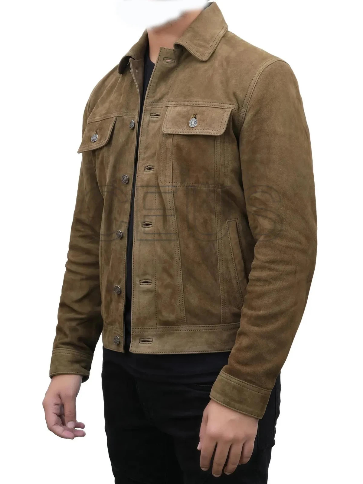 Men’s Brown Suede Leather Trucker Jacket – Vintage Western Style | Genuine Lambskin Coat for Men Upgrade your wardrobe with this stylish Men’s Brown Suede Leather Trucker Jacket, crafted from 100% genuine lambskin leather. Designed for the modern man with a taste for timeless fashion, this jacket blends rugged vintage western charm with everyday functionality. The soft suede finish adds a touch of luxury, while the structured silhouette and classic trucker design offer a flattering fit. Whether you're heading out for a casual day or want to add a bold layer to your evening outfit, this real leather jacket delivers unmatched style and comfort. ✅ Key Features: Material: 100% Genuine Lambskin Suede Leather Color: Rich Brown Design: Classic Trucker Jacket with Vintage Western Styling Closure: Front Button Closure with Metallic Snap Buttons Pockets: Two Chest Flap Pockets with Buttons + Two Side Hand Pockets Inner Lining: Soft and breathable inner lining for comfort Fit: Tailored fit with buttoned cuffs and adjustable waist Perfect For: Fall, winter, and early spring wear Occasions: Casual outings, road trips, parties, or gifting Ideal Gift: Great birthday or anniversary gift for husband, boyfriend, or brother #Suedeleatherjacket #MensShirt #Sweater #Handmadejacket