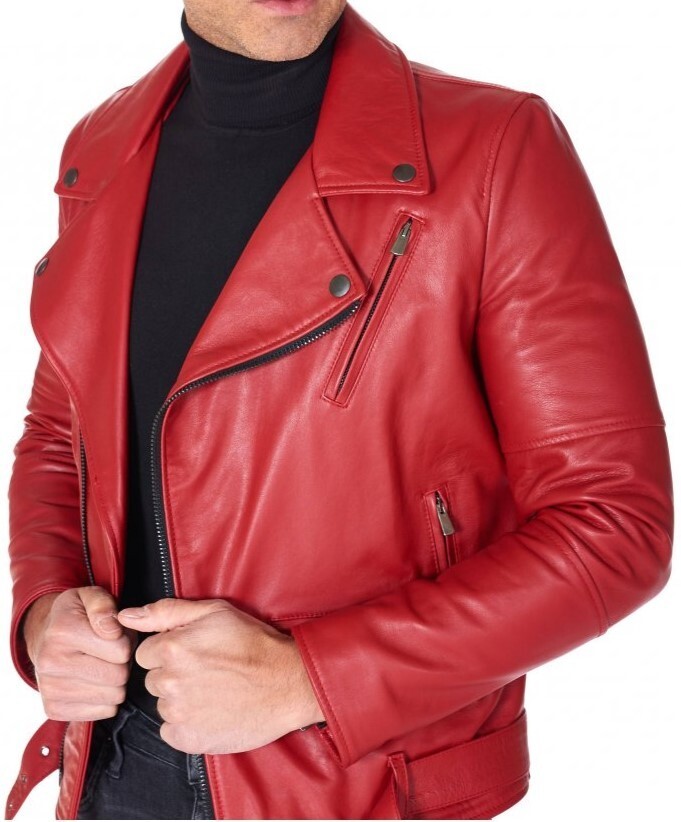Men's Red Belted Nappa Lambskin Leather Biker Jacket - Stylish & Premium Specifications: Material: Real Leather / Faux Leather Lining: Viscose Lining Closure Style: Asymmetrical Zipper Closure Collar Style: Lapel Notch Collar Sleeve: Full length Sleeves Cuffs Style: Zipper Cuffs Outside Pockets: Three Outside Pockets Hemline: Belted Waist Style: Biker Jacket Color: Red Make a bold statement with the Men's Red Belted Nappa Lambskin Leather Biker Jacket – Stylish & Premium , a perfect blend of edgy design and luxury craftsmanship. Crafted from premium Nappa lambskin leather , this sleek red biker jacket offers a soft, supple feel with unmatched durability. The asymmetrical front zipper , wide lapel collar , and adjustable waist belt give it a classic motorcycle-inspired look, while the zippered cuffs and multiple pockets add both style and functionality. Designed for a slim-fit silhouette , this jacket ensures a sharp, modern appearance. Whether you're riding or turning heads on a night out, this red leather biker jacket is the ultimate choice for men who crave style, confidence, and premium quality. Size Chart: Refer to the attached size chart for Standard and Custom Sizes Measure your chest before ordering Money Back Guarantee: 100% Money Back Guarantee for unsatisfied customers Feedback: Thank you for viewing our eBay Store Positive feedback appreciated Contact us before leaving negative feedback Kindly leave us 5-star ratings for quality improvements Contact Us: Queries? Contact us: response within 2 working hours Shipping: Ship to your eBay address: ensure correctness before payment