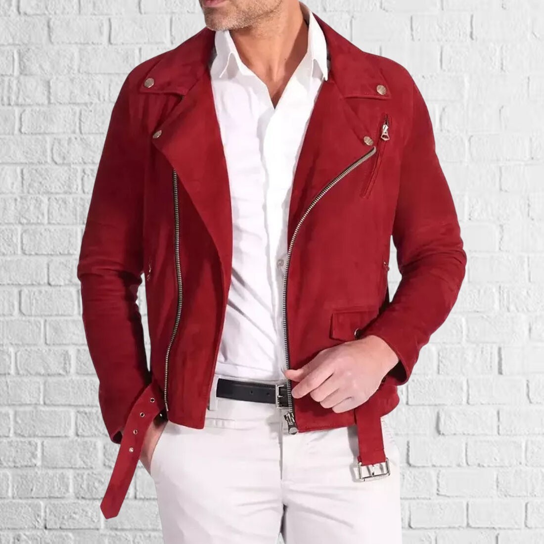 Product Description : Turn heads this winter with this bold red suede jacket ❤️🧥. Featuring a classic collar with lapels, full sleeves, a smooth zip closure, and roomy pockets for convenience 🔒. The rich suede texture adds a luxe feel, making it perfect for chilly days ❄️. A standout piece that brings warmth and serious style 🔥. · Jacket Size Guide : This is not USA/UK/EU Size , this is standard size which you need to select as per your actual body size · For a chest size of approximately 36 to 37 inches, choose size XS. · For a chest size of approximately 38 to 39 inches, select size S. · For a chest size of approximately 40 to 41 inches, go with size M. · For a chest size of approximately 42 to 43 inches, opt for size L. · For a chest size of approximately 46 to 47 inches, pick size XL. · For a chest size of approximately 48 to 49 inches, choose size XXL. · For a chest size of approximately 50 to 51 inches, select size XXXL. Terms of Sale We ship through DHL, FedEx, Aramex, and India Post. Orders are dispatched within 1–3 business days after receiving payment. For EU and other European countries, customs may charge additional taxes before delivery. Please check with your local customs office for details. These charges are the buyer’s responsibility, as we only charge for the product and shipping. All items are 100% authentic. Due to lighting and screen differences, actual colors may vary slightly, but we ensure the closest match to the original. Zipper pullers and accessories may differ from the pictures based on availability. Buyers are responsible for return shipping costs. Returns are accepted within 7 days of delivery, provided the item is unused and in perfect condition. Shipping fees are non-refundable. Customized items are non-refundable. Postage and packaging costs are non-refundable. If exchanging an item, the buyer must cover return shipping and postage costs for the replacement. Please check our size chart carefully before ordering to avoid sizing issues.