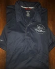 Mens Reebok Play Dry Short Sleeve Prestige Sport Golf Polo Shirt Size Large 100% polyester Navy, gray geometric pattern 9th Annual Doug Flutie Jr Celebrity Golf Classic logo on chest RBK logo on sleeve Sun Life Financial on one sleeve Measures 24x32 VERY NICE SHIRT FROM SMOKE FREE HOME. FAST SHIPPING WITH TRACKING INFORMATION PROVIDED.