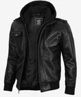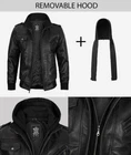Men's Removable Hood Bomber Moto Biker Racer Real Lambskin Black Leather Jacket Product Descriptions: Material: 100% Genuine Lambskin Leather Internal: Soft Skin Friendly Polyester Lining Colour: Black Style: Bomber Jacket Features: Removable Hood & Shoulder Epaulets Front: Zipper Closure Front (Right Side) Cuffs: Rib-Knitted Cuffs Hemline: Rib-Knitted Hemline Collar: Snap Buckle Collar Pockets: Five Pockets Outside & Two Pockets Inside Stitching: Excellent Quality Care: Professional Leather Dry Clean Only