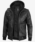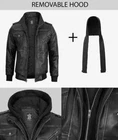 Men's Removable Hood Bomber Moto Biker Racer Real Lambskin Grey Leather Jacket Product Descriptions: Material: 100% Genuine Lambskin Leather Internal: Soft Skin Friendly Polyester Lining Colour: Grey Style: Bomber Jacket Features: Removable Hood & Shoulder Epaulets Front: Zipper Closure Front (Right Side) Cuffs: Rib-Knitted Cuffs Hemline: Rib-Knitted Hemline Collar: Snap Buckle Collar Pockets: Five Pockets Outside & Two Pockets Inside Stitching: Excellent Quality Care: Professional Leather Dry Clean Only