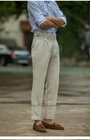 Linen Retro Mens GURKHA Pants Casual Pants Business Trousers Straight High Waist