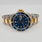 Men's Rolex 40mm Submariner 18K Gold / Steel Wristwatch w/Blue Dial & Blue Bezel Men's Rolex Submariner 40mm Date 16613 Oyster Perpetual Two-Tone 18K Yellow Gold / Stainless Steel Watch with Blue Dial and Blue Bezel. Pre-Owned SN# A40**** Year: 1999. Brand: Rolex. Gender: Men's. Dial Color: Blue. Type: Wristwatch. Case Size: 40mm. Bezel Color: Blue. Band/Strap: Bracelet. Indices: Non-Numeric. Condition: EXCELLENT. Model: Submariner 16613. Band Material: Stainless Steel. Bezel Type: Unidirectional Rotating. Water Resistance: 100 m (10 ATM). Movement: Mechanical (Automatic). Hour Marks: Round / Baton Indexes. Box / Certificate: Rolex Box / Certificate of Authenticity. Service Warranty: One (1) Year Limited Service Warranty. MONACO JEWELERS Men's Rolex Submariner 40mm Date 16613 Oyster Perpetual Two-Tone 18K Yellow Gold / Stainless Steel Watch with Blue Dial and Blue Bezel. Pre-Owned SN# A40**** Year : 1999. Brand : Rolex. Gender : Men's. Dial Color : Blue. Type : Wristwatch. Case Size : 40mm. Bezel Color : Blue. Band/Strap : Bracelet. Indices : Non-Numeric. Condition : EXCELLENT. Model : Submariner 16613. Band Material : Stainless Steel. Bezel Type : Unidirectional Rotating. Water Resistance : 100 m (10 ATM). Movement : Mechanical (Automatic). Hour Marks : Round / Baton Indexes. Box / Certificate: Rolex Box / Certificate of Authenticity. Service Warranty: One (1) Year Limited Service Warranty. × × × × × × × × × × × × × × × × × × × × BUY IT NOW Shipping info Click the Shipping & Payments tab above the listing description for more info Click the Shipping & Payments tab above the listing description for more info! Additional delivery notes PICK UP OPTION Sorry, our items are NOT available for pick-up. PAYMENT Immediate payment is required upon selecting "Buy It Now" or upon checking out through the cart. We accept payment via U.S. PayPal accounts and all Major Credit Cards, Debit Cards & Google Pay. We are legally required to collect sales tax in those states and localities where we maintain a physical presence (nexus). The applicable amount of sales tax charged to an order will be calculated based on the shipment destination's state and local sales tax laws. Thank you for shopping with us on eBay! Additional Information No additional information at this time Ask seller a question You might also like Ladies Rolex 26mm Presidential 18K Gold Watch with Mother of Pearl Diamond Dial. Men's Rolex DateJust 36mm Two Tone 18k Gold / Steel Watch with Egg Shell Dial. Ladies ESQ Swiss Movado Venture Stainless Steel Watch with Black Diamond Dial. Ladies Coach 26mm Gold Plated Watch w/Genuine Black Leather Band & White Dial. Contact To contact our Customer Service Team, simply click the button here and our Customer Service team will be happy to assist. Ask seller a question © Monaco Jewelers Shipping & Payments Click the Shipping & Payments tab above the listing description for more info Payment Accepted Payment Methods Immediate payment is required upon selecting "Buy It Now" or upon checking out through the cart. We accept payment via U.S. PayPal accounts and all Major Credit Cards, Debit Cards & Google Pay. We are legally required to collect sales tax in those states and localities where we maintain a physical presence (nexus). The applicable amount of sales tax charged to an order will be calculated based on the shipment destination's state and local sales tax laws. Thank you for shopping with us on eBay! Returns Returns are accepted Items must be returned within of the auction ending Buyer will pay for return shipping. eBay integration by