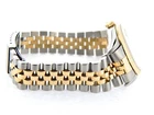 Mon-Thurs: 8:30 am – 5:30 pm (CST) Friday 8:30 am - 2:30 pm (CST) Lifetime Trade-Up Guarantee 30 Days Return Policy 1 Year Warranty Mens Rolex Datejust 18k Gold and Steel Watch No Holes FACTORY DIAMOND Dial 16233 BeckerTime is proud to offer this nice Men's 36mm Rolex Two-Tone 18K Yellow Gold and Stainless Steel Datejust Watch ref #16233 with a Rolex Gold Champagne Factory Diamond Dial . This is the desired "NO HOLES" QUICKSET MODEL with the SAPPHIRE CRYSTAL and a Rolex Jubilee band. This Rolex is in EXCELLENT CONDITION . SKU: T630703NBCMT 1 Year Warranty Specifications Brand Rolex Model Name Datejust Model No. 16233 Gender Men's Case Diameter 36mm Box No Papers No Condition Preowned - Excellent Condition (See Condition Grading Scale below) Warranty Yes - BeckerTime 1 Year Warranty Lifetime Trade-Up Guarantee This Rolex comes with the BeckerTime Lifetime Trade-Up Guarantee Watch Features Movement Rolex officially certified chronometer self-winding automatic movement with QUICKSET Date function Dial Rolex GOLD CHAMPAGNE dial with 10 round brilliant diamonds. This is a factory Rolex diamond dial! Bezel Rolex solid 18k yellow gold FLUTED bezel Crystal Aftermarket Sapphire Crystal Case Rolex stainless steel case Band Rolex 2tone 18k yellow gold and stainless steel Jubilee bracelet with Rolex signed clasp. Moderate stretch/wear. Max Wrist Size 7 1/2" wrist Additional Links Available for an additional cost. Link adds 1/4" AS WITH ALL OF OUR WATCHES, AUTHENTICITY IS GUARANTEED! THIS IS A FILE PHOTO. On This Item On All Items Condition Grading Scale Brand New 10 New. Perfect condition and never worn. The watch has the original manufactures protective plastic (if applicable). It may or may not come with original box or papers. It is working properly, keeping very good time. Super Excellent Condition 8.5 to 9.5 Super nice. Light signs of wear. Watches with the original band will have moderate to minimal stretch between the links. The watch is working properly, keeping good time. Never Worn 9.8 to 9.9 New. Perfect condition and never worn. The watch has the original manufactures protective plastic (if applicable). It may or may not come with original box or papers. It is working properly, keeping very good time. Excellent Condition 7.0 to 8.5 Nice. Signs of wear. Depending on the age of the timepiece, watches with the original band will have loose or moderate stretch and wear between the links. The watch is working properly, keeping good time, but may gain or lose up to 30 seconds over 24 hours. Super Mint Condition 9.7 to 9.8 Perfect. Looks never worn. As close to new as you can get for a preowned watch. This is the equivalent of a new watch that does not have the original manufactures protective plastic (if applicable). If you remove the protective plastic from a brand new watch, and have not yet worn the watch, it is now in Super Mint Condition. It may or may not come with original box or papers. It is working properly, keeping very good time. Fair Condition 5.0 to 7.0 Fair. Signs of heavy wear. Watch may have a few dings, nicks, or deep scratches The band has severe stretch between the links. The watch is working, but may gain or lose a few minutes over 24 hours. Mint Condition 9.5 to 9.7 Near perfect. Looks like new on the wrist. Signs of wear are only visible with a loupe. The band has no stretch or wear. The watch is working properly, keeping very good time. Poor Condition Less than 5 Poor. Signs of extreme heavy wear, damage, or abuse. Major cosmetic and/or mechanical flaws that directly affect the integrity of the watch. The watch may be missing parts and/or may not run at all. We do not recommend this watch to be worn in this condition. Requires a lot of work to be made wearable. Brand New 10 New. Perfect condition and never worn. The watch has the original manufactures protective plastic (if applicable). It may or may not come with original box or papers. It is working properly, keeping very good time. Never Worn 9.8 to 9.9 New. Perfect condition and never worn. The watch has the original manufactures protective plastic (if applicable). It may or may not come with original box or papers. It is working properly, keeping very good time. Super Mint Condition 9.7 to 9.8 Perfect. Looks never worn. As close to new as you can get for a preowned watch. This is the equivalent of a new watch that does not have the original manufactures protective plastic (if applicable). If you remove the protective plastic from a brand new watch, and have not yet worn the watch, it is now in Super Mint Condition. It may or may not come with original box or papers. It is working properly, keeping very good time. Mint Condition 9.5 to 9.7 Near perfect. Looks like new on the wrist. Signs of wear are only visible with a loupe. The band has no stretch or wear. The watch is working properly, keeping very good time. Super Excellent Condition 8.5 to 9.5 Super nice. Light signs of wear. Watches with the original band will have moderate to minimal stretch between the links. The watch is working properly, keeping good time. Excellent Condition 7.0 to 8.5 Nice. Signs of wear. Depending on the age of the timepiece, watches with the original band will have loose or moderate stretch and wear between the links. The watch is working properly, keeping good time, but may gain or lose up to 30 seconds over 24 hours. Fair Condition 5.0 to 7.0 Fair. Signs of heavy wear. Watch may have a few dings, nicks, or deep scratches The band has severe stretch between the links. The watch is working, but may gain or lose a few minutes over 24 hours. Poor Condition Less than 5 Poor. Signs of extreme heavy wear, damage, or abuse. Major cosmetic and/or mechanical flaws that directly affect the integrity of the watch. The watch may be missing parts and/or may not run at all. We do not recommend this watch to be worn in this condition. Requires a lot of work to be made wearable. Why Buy From BeckerTime About Us BeckerTime began in 1998 as the passi