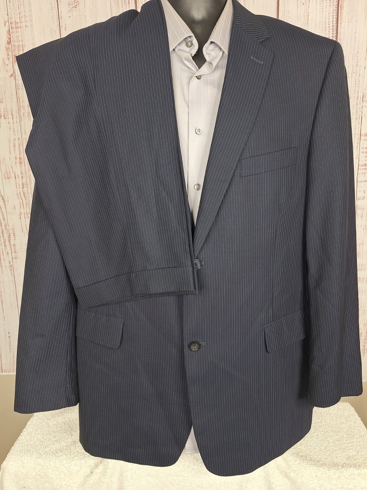 Rubin 2 Piece suit Mens 42L 36X31 Black Blue Stripe Wool Double Vented Quality used condition. Please check out the measurements before buying to ensure a perfect fit.Tailored from 44 to 42L Shirt Size on Label 42L Shoulder- Hem 33.00'' Shoulder- Shoulder 20.00'' Shoulder- Wrist 26.00'' Armpit- Armpit 22.50'' 21.00'' Everything ships within a day. Feel free to message me with any questions. Thank you very much. 10/9/24 Pants Flat Front Cuffed Quality used condition. Please check out the measurements before buying to ensure a perfect fit.a tear in belt loop Fabric Pants Size on Label Seam (Outer) 40.00'' Waist 36.00'' Waist- Crotch 12.00'' Inseam 31.00'' Extra inseam fabric 1.20'' Everything ships within a day. Feel free to message me with any questions. Thank you very much. 10/9/24