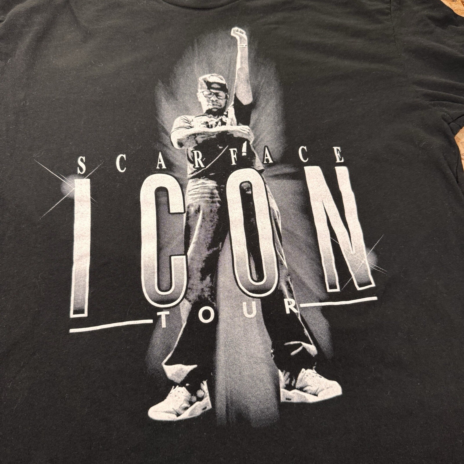 This Mens T-shirt featuring the iconic Scarface design is a must-have! In excellent condition—no stains, holes, or flaws. Fits true to size (Large), and the print is still vibrant. Check the pics for exact measurements—great deal for any fan!
