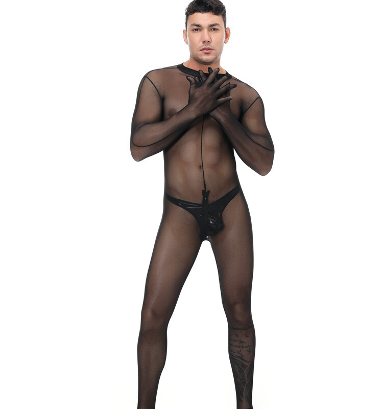 * Item Fabric: Tulle Netting * Item Color : Black ( As P ictures S how ) * Item C ondition :100% Brand New * Item Description: M en ' s Sexy Lingerie, See Through , Pantyhose Tights, Full Body Stocking, Bodysuit * Package Contents: 1 *Bodysuit (NO Accessories Included)