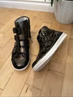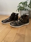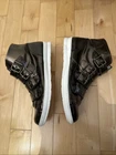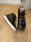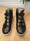 Jump High Top Sneakers in men's shoe size 11.5 US are a stylish addition to your wardrobe. These high-gloss brown sneakers feature a shiny pattern and a buckle detail for a trendy look. Made with a synthetic outsole and leather upper, they provide comfort and durability for various activities like basketball, running, and casual wear. Perfect for winter, summer, fall, and spring seasons, these sneakers offer a versatile option for everyday wear. Elevate your shoe collection with these Jump High Top Sneakers.