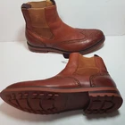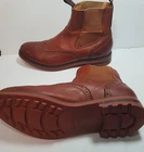 Men's Size 41 Waxed Leather Chelsea Boots in chestnut brown by Laurence Crockett are the perfect blend of style and comfort. These boots feature a round toe shape, pull-on closure, and ankle shaft style, making them ideal for travel, casual outings, or workwear. The leather outsole and cushioned insole provide support and lightweight comfort throughout the seasons. Crafted with attention to detail, these Laurence Crockett Chelsea boots in size 41 are a versatile addition to any wardrobe. Laurence Crockett is Mountfords very own brand, Laurence Crockett features the latest styles and designs making no compromise on comfort. From casual weekend wear to polished styles for the working week, Laurence Crockett has a range to suit any need. They are a high quality boot and the detailing is reflective of this. All their boots are in the range $250 upwards.