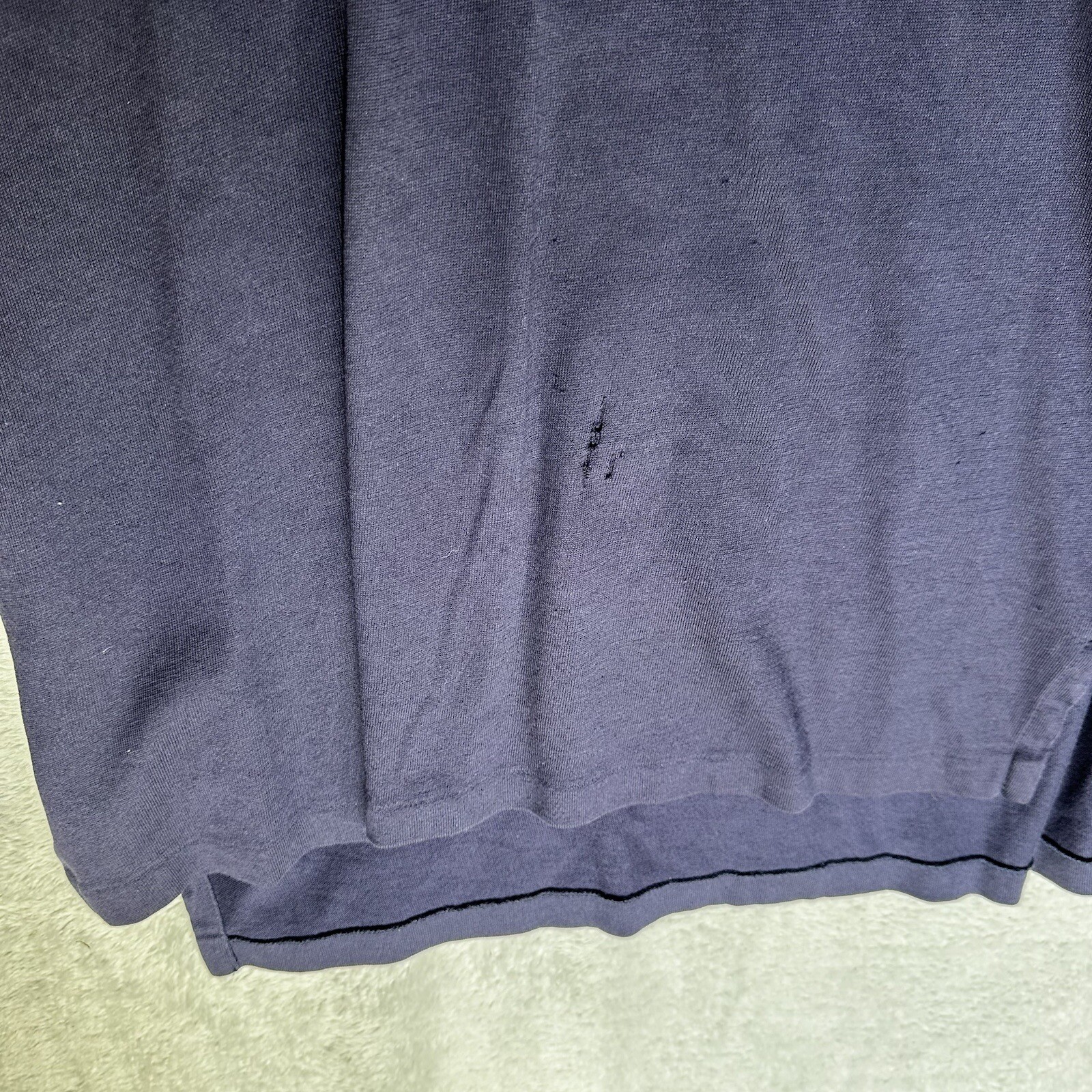 This navy blue Ralph Lauren Polo Golf shirt is perfect for any man's wardrobe. Made of comfortable cotton material and featuring a collared neckline, short sleeves, and a regular fit, this shirt is both stylish and versatile. The solid pattern in medium fabric wash makes it suitable for any occasion. The shirt is pre-owned but has been well-maintained and is in excellent condition. It is a size medium and is perfect for any man looking for a comfortable and fashionable shirt. Slight tear near bottom of shirt see photos