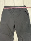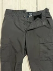 These Propper Public Safety Tactical Cargo Pants are designed for comfort and functionality. They feature an adjustable waist, button fly closure, and drawstring ankle for a secure fit. The pants are made of a durable polyester and cotton canvas fabric, with a flat front and straight leg style. With multiple pockets and a cargo pocket type, these pants are perfect for both casual and workwear occasions. They come in a size small, in a solid gray color. The pants are machine washable and were made in Haiti as part of the F5201 product line. They are in good preowned condition, but they do have a few spots of discoloration as shown in the last two photos. Please zoom in on photos for style, condition and flat-lay measurements.