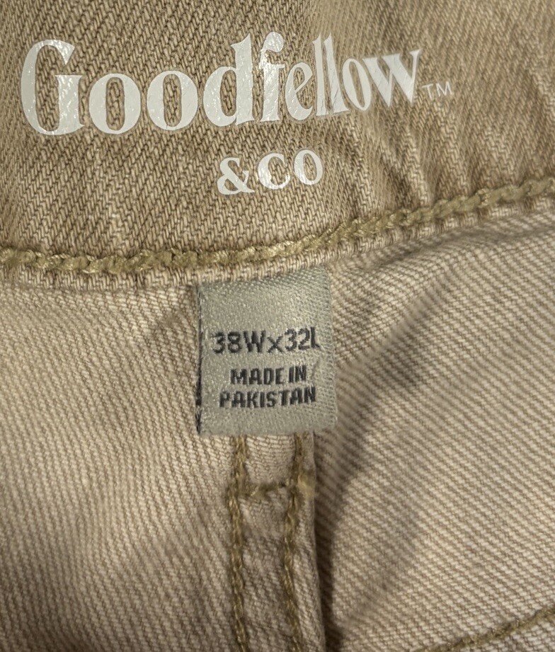 Men's Slim Fit Dust Brown Total Flex Goodfellow Denim Men’s 36x31 Stretch Work *tag says 38x32, is actually measured 36x31* Please refer to photos for exact measurements! Thank you for supporting our small business!