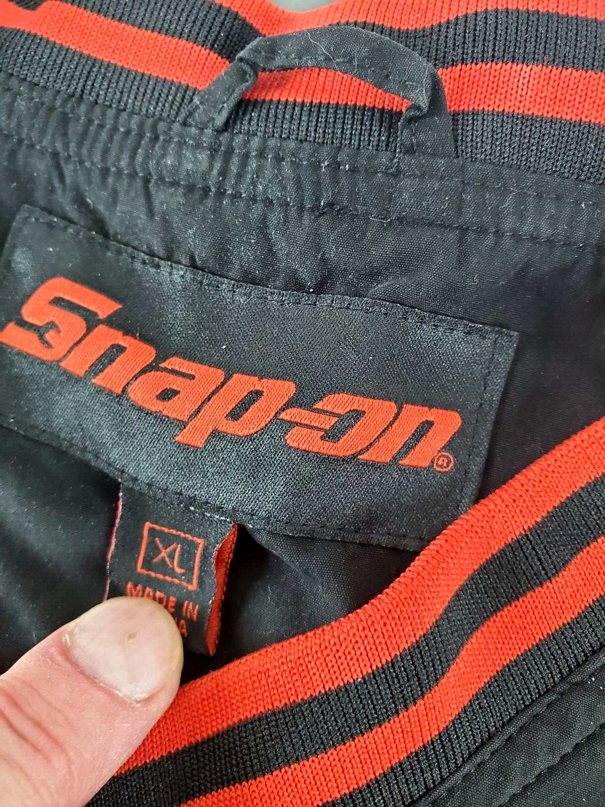 MENS SNAP ON TOOLS RACING WINDBREAKER PULLOVER JACKET V NECK SIZE XL VINTAGE Up for your consideration is this Really Nice Vintage Snap On Tools Racing Windbreaker Pullover in a Men's Size XL. This is labeled a size XL but please see the exact dimensions below to ensure a proper fit. This pullover features a large embroidered logo on the front left breast with black and white racing flag as well as an embroidered logo on the back neckline. The V-neck band is made from a strong, stretchy elastic material making this easy to put on and take off. The outer lining is soft to the touch and a drawstring at the hem will ensure the wind stays out. This is a very nice pullover perfect for cooler days when you still want to work in the garage. Please be sure to see all the other items we have listed. With over 1,800 items currently running and new ones added daily some people find more than one item that they may be interested in. If you like this and any other items we have, we often make custom listings, with a Quantity Discount AND Combined Shipping to save you money. Just send us a wish list to see what kind of awesome deal we can offer you. No obligation at all - if your not thrilled - you can just pass on it. FEATURES: Lightweight, yet very warm. Soft and Comfortable Windbreaker Style Pullover in a Men's Size XL. Snap On Tools Embroidered Logo. Elastic V-Neck, Elastic Gather at the Cuff, Drawstring Hemline to keep cold air out. 2 Deep, Slit Style Pockets on the front. Hanging Loop. Black in Color. Water Resistant. Perfect for Working Outdoors, in the Garage, or on the Track ADD. INFO: N/A INCLUDED: The actual Snap On Tools Racing Pullover Windbreaker in a Men's Size XL pictured. NOT-INCLUDED: No original box, packaging, or paperwork. No props used for size reference. BRAND: Snap On Tools LABEL: Racing DIMENSIONS: This is labeled a men's size XL. When laid flat it measures 29" across the chest and 25" across the shoulders. The sleeves measure 24" long and the wrist opening measure 8" in diameter un-stretched. The neck opening measures 10" across un-stretched and the overall length is 28". The bottom hem is 27" across. COLOR: Black with red and white embroidered logos TYPE: Men's Clothing, Snap On Tools, Pullover MODEL #: N/A COPYRIGHT DATE: Unknown CIRCA: Likely around the 1990's give or take 10 years. COUNTRY: China MATERIAL:100% Polyester CONDITION: This comes to you in overall excellent condition. There are no rips, tears, or stains. IT does not appear to have ever been worn however we can not be positive. The cuffs and neck are not stretched out. AUTHENTICITY and your SATISFACTION are UNCONDITIONALLY 100% GUARANTEED!!! Once you get it - if you are not thrilled just let me know - I gladly accept returns. Check my feedback and buy with complete confidence I have been selling on eBay everyday since 2001. SHIPPING DETAILS: The buyer pays for securely packed EXPEDITED shipping. It will include tracking and insurance. For premium services delivery to your address will usually take between 3 to 5 days. I will always combine shipping to save you money whenever possible, just email us to let us know. Please be sure to click on the shipping tab to compare rates and see all of the options available for shipping, some options cost less than others. SHIPPING CONDITIONS: *** Please Take Note!!! When paying we can ONLY ship to the address that is included with your payment . If you need it sent to a different address please change that PRIOR to making payment. We can no longer change the ship to address. LOC: E 2 F You really like the thing, but not so much the price... I find cool stuff, do some research and list it for what I think it's worth. Sounds pretty simple but sometimes not. So if this is something you really like but its a bit more than you had hoped to pay, then be sure to watch this because I can't send it to the bank, and if it ends without a buyer chances are good that I will drop the price and re-list it until it does sell! Two things for sure - it will get sold sooner rather than later, and that's better for both of us. International Buyers We will ship to most, but not all locations around the world. We use Priority Mail, and it will include full insurance and delivery confirmation. Unfortunately we do not ship using first class international mail because there is no insurance available. "Import Duties", "Tariffs" and "Taxes" are NOT included in the item price or shipping charges. These charges are imposed and collected by your country and are your responsibility. Please check with your country's customs office to determine what these additional costs (if any) will be prior to bidding/buying. These charges are normally collected by your customs office when you pick the item up or upon delivery ? please do not confuse them with shipping charges, they are not. Buyers using the Ebay Global Shipping Program will be shown these cost prior to purchase. We can NOT reduce the value on the "Customs Forms". The sales prices is automatically entered and also sets the maximum amount that the item can be insured for. We can not mark items purchased by you as "gifts". Some countries restrict or prohibit the import of certain items such as currency - jewelry or animal parts such as teeth, claws, horns or shells from many creature on the endangered specie list. The lists varies widely and changes often. It is your responsibility to check and make sure your country allows this specific item to be imported by you. We take a great deal of pride in our feedback rating and never want you surprised by anything you get from us. PLEASE If there is ever an issue, all we ask is that you give us an opportunity to address it BEFORE leaving feedback. Overall General Condition New Excellent Very Good Good Fair Poor Appearance Brand new and never used. No visible flaws in appearance. First quality, suitable for a gift. Like new condition. Upon close inspection some very minor signs of use or wear, but no serious fla