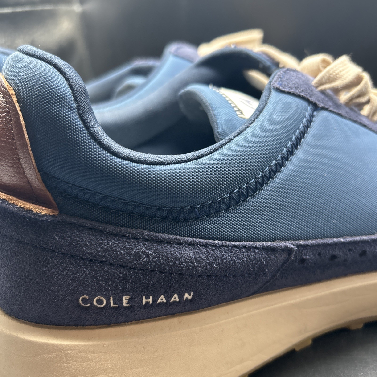 The Men's Cole Haan Grand CrossCourt Winner Sneaker in Blue/Navy Blue is a stylish and comfortable athletic shoe designed for men. Featuring a lace-up closure and low-top shoe shaft style, this sneaker offers a cushioned and comfortable feel. Made with leather upper material and fabric lining, it is suitable for walking and other athletic activities. The rubber outsole provides durability and support, making it a practical choice for everyday wear or sports activities. The modern and colorful design of this sneaker makes it a standout choice for those looking for both style and functionality in their footwear.