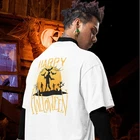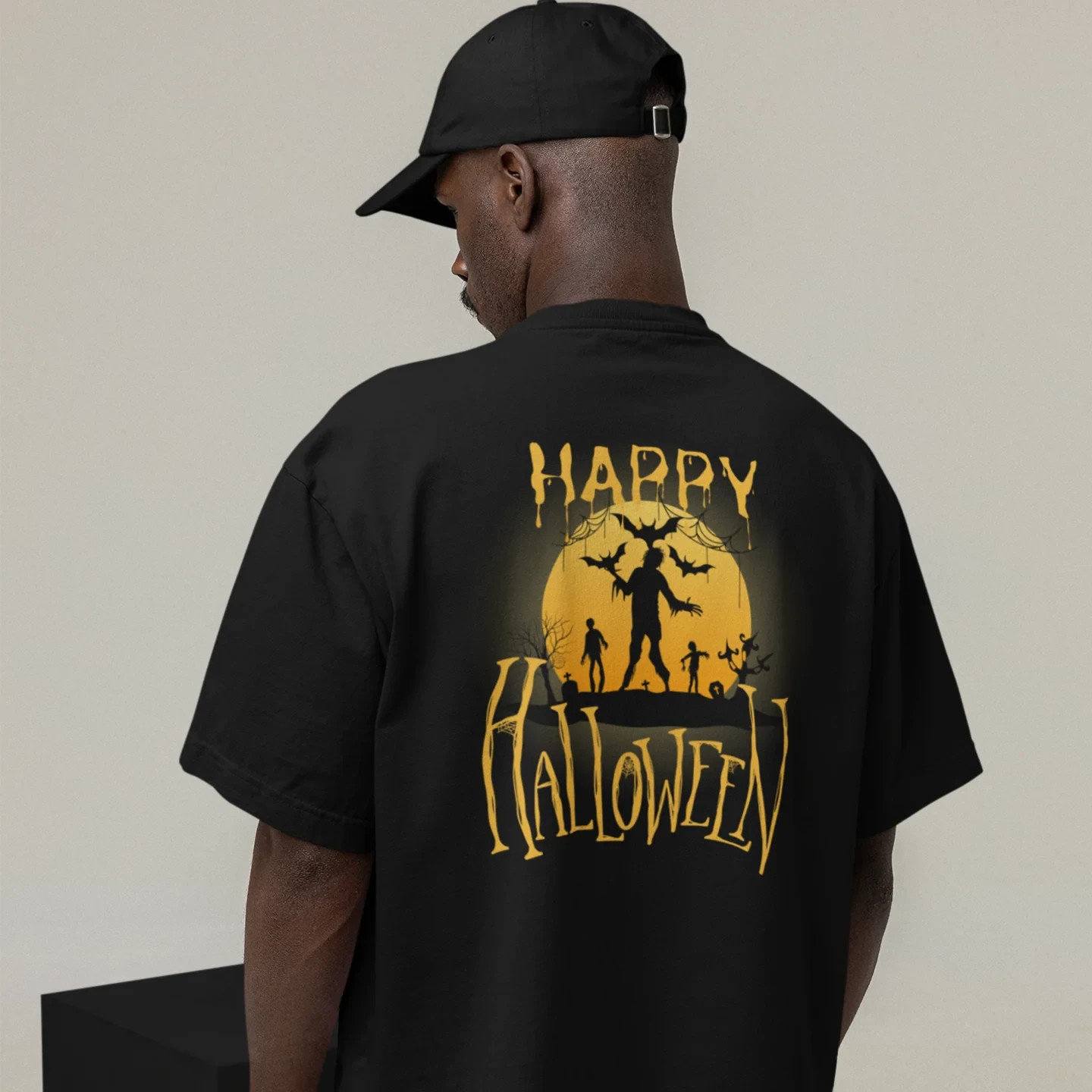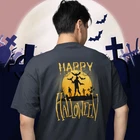 Introducing our Halloween special back printed comfort fit round neck t shirt for Men. Made with high-quality fabric, this t-shirt provides maximum comfort and style. The unique Halloween design on the back adds a spooky touch to your wardrobe. Perfect for Halloween parties or everyday wear. FOR OVERSIZED LOOK PLEASE CHOOSE ONE TO TWO SIZES UP THAN YOUR USUAL SIZE DEPENDING ON YOUR CHOICE. Overview: Comfort and style are the name of the game for these custom boxy t-shirts. Their relaxed fit along with the dropped shoulders add that modern aesthetic that can blend into any occasion. Fabric: 100% airlume combed and ring-spun cotton (fiber content may vary for different colors. Medium fabric (6.0 oz/yd² (170 g/m²)). Fit: The relaxed fit keeps the wearer comfy in both casual and semi-formal settings while the crew neckline delivers that classic, neat style which makes it perfect for accessorizing. Fabric blend: Solid colors are 100% cotton; Athletic Heather is 90% cotton, 10% polyester