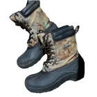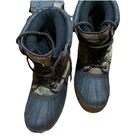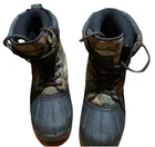 This is a pair of men's Field & Stream Buck Hunter 600 boots in size 9. The boots feature a camouflage pattern with a round toe shape and lace-up closure. They are designed for activewear, with a multicolor design and nature-themed detailing related to hunting. The boots are water-resistant and suitable for winter, fall, and spring seasons. They have a rubber outsole and synthetic upper material, making them durable for outdoor activities. Excellent condition. Will mail promptly.