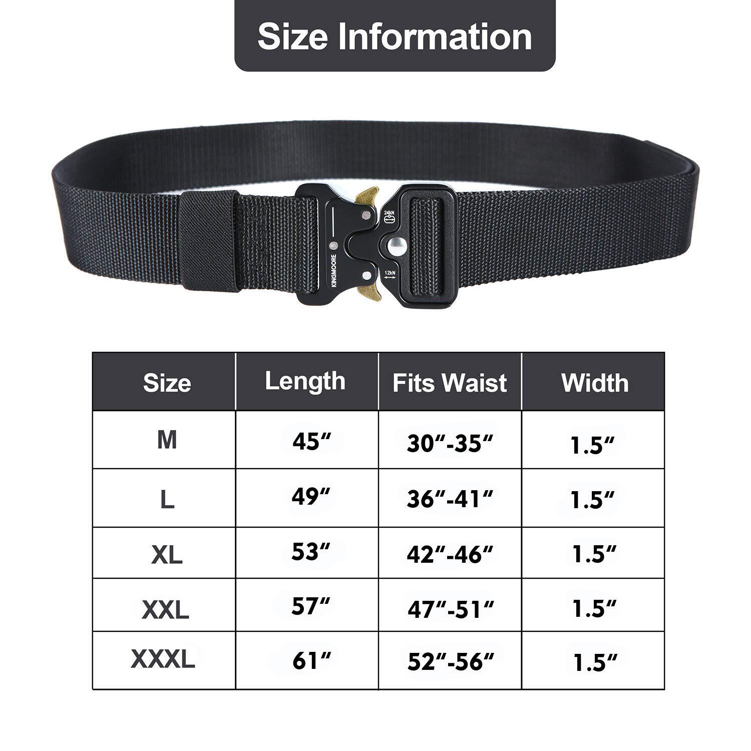 Men's Tactical Belt Heavy Duty Webbing Belt Adjustable Military Style Nylon Belts with Metal Buckle Thickened nylon belt and strength metal buckle. Tactical Belt – Many special force soldiers were invited to perform wearing tests when the tactical waistband was developed. And the result of the feedback was favorable. We use soft tank grain braids, a kind of new braiding technology that makes nylon braids have desirable flexibility and gas permeability, dramatically enhancing the experience and comfort of wearers as well as providing the anti-tearing property of nylon braids. Buckle Design – Aviation class 7075 aluminum alloy is used to make the buckle. In addition, advanced CNC is used for processing precision, and solid copper stainless steel material is used for processing its internal structure. It can endure an impact as high as 9,000N without deformation or damage, ensuring that it will not break off in case of external force. Its tightness and length can be adjusted freely to meet different wearing requirements. Routine Wearing – The concise and elegant waistband is applicable to all kinds of overalls, casual pants, tactical trousers, and outdoor trousers as well as outdoor uses such as outward bound trainings like outdoor rock climbing, tactics and prompt drop. The waistband is firm. Any gun or survival equipment can be carried, and leather and small bags can be carried as well for outdoor exercises. We know you'll love our tactical belt as much as we do, If for any reason you're not 100% satisfied, let us know and our team will provide you with satisfactory service. Shipping We offer FREE shipping on all orders! We ship within Three business days of payment, usually sooner. We use a selection of shipping services such as UPS, FedEx, USPS etc. We only ship to the lower 48 states, no APO/FPO addresses or PO Boxes allowed. Local pickups and combined shipping options are not provided at this time. Return You can return a product for up to 30 days from the date you purchased it. Any product you return must be in the same condition you received it and in the original packaging. Please keep the receipt. Payment We accept payment by any of the following methods: PayPal Please pay as soon as possible after winning an auction, as that will allow us to post your item to you sooner! Feedback Customer satisfaction is very important to us. If you have any problem with your order, please contact us and we will do our best to make you satisfied. Contact Us If you have any queries, please contact us via ebay. We usually respond within 24 hours on weekdays. Please visit our eBay store to check out other items for sale! Thank you for shopping at our store.