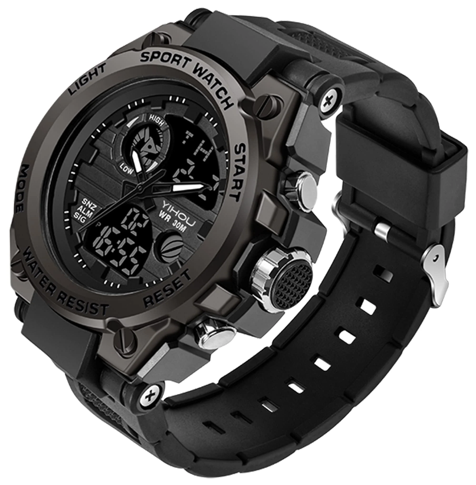 Store New Arrivals Add to Favorite View Feedback Contact Men'S Military Watch Outdoor Sports Electronic Watch Tactical Army Wristwatch LED Stopwatch Waterproof Digital Analog Watches Description Features Waterproof, Shockproof, LED Gender Male Age Group Adult Assembled Product Weight 2.7 oz Manufacturer Part Number 739 Color Black [Military Tactical Watch] Cool sporty dial, big face (2"/ 53mm ) army design. Digital and Analog two time zones-easy to read time and could set dual time. Note: the digital readout is partial dark. [Multifunction Watch] Stopwatch, alarm, LED backlight, calendar(date, week display), 12/24 hour time format, dual time, shockproof. [Durable and Comfortable for Daily Wear] Comfortable and soft band, ABS body and scratch resistance glass-enough strong for sport activities. Adopt imported quartz movement and long-life battery to keep precise time. [Waterproof Watch] In general, suitable for swimming and washing hands, but please DO NOT press any button in the water and not for hot water. [Gift Watch ] A perfect gift for any gift giving occasion: Valentine's Day, anniversary, business, birthday, Thanksgiving Day, Father's Day Christmas etc. Fashion military watch easily spice up a normal outfit and add style and attitude into life. Watch Material: Movement: Quartz Battery: Japanese battery Case: Metal and ABS Band: PU Band Clasp Type: Buckle Watch's Specification Max wrist: 8.8” Min wrist: 6.5” Band width: 22mm Case diameter: 2”/ 53mm Case thickness: 0.6”/ 16mm Weight: 2.7oz/ 76g Package Details:1 x Tactical watch;1 x English manual;1 x Watch case Water-resistant to 3 ATM Dual time zone display LED backlight Alarm clock Shockproof 12/24-Hour time format Stopwatch Calendar- Date/Week display ABOUT US We offer the best prices around on high quality products. Our E-store includes media such as books, movies, music and games while offering electronics, toys, sporting apparel, clothing, tools, general home, garden items and more. SHIPPING We are always working hard to ensure your package arrives as soon as possible. Please understand that some factors like weather, high postal traffic, and the performance of shipping companies are outside of our control. We offer free shipping to the lower 48 states and ship within 2 business days of payment, usually sooner. We do not accept P.O. Boxes. Please provide a physical address. For shipping outside of the continental USA, we only use eBay's Global Shipping Program.The item is shipped to KY and then sent to the rest of the world. International customers are responsible for all duties and taxes. Continue to check out in order to calculate costs for shipping the item to your country. Messages regarding eBay's Global Shipping Program MUST be directed at eBay EXCLUSIVELY. RETURNS We offer a 30-Day Return Policy on items which you are not completely satisfied with. You have the option for a full-refund or an exchange of the item. No returns are available on items shipped outside of the USA. PAYMENT We accept PayPal. CONTACT US This page content is yet to come Please ad us to your favorite seller and visit again later Thank You CUSTOMER SATISFACTION We try our very best to make sure every customer is completely satisfied. If there's a problem, message us! We're happy to help. WE ACCEPT Copyright © 2021 AutoDS. | All Rights Reserved