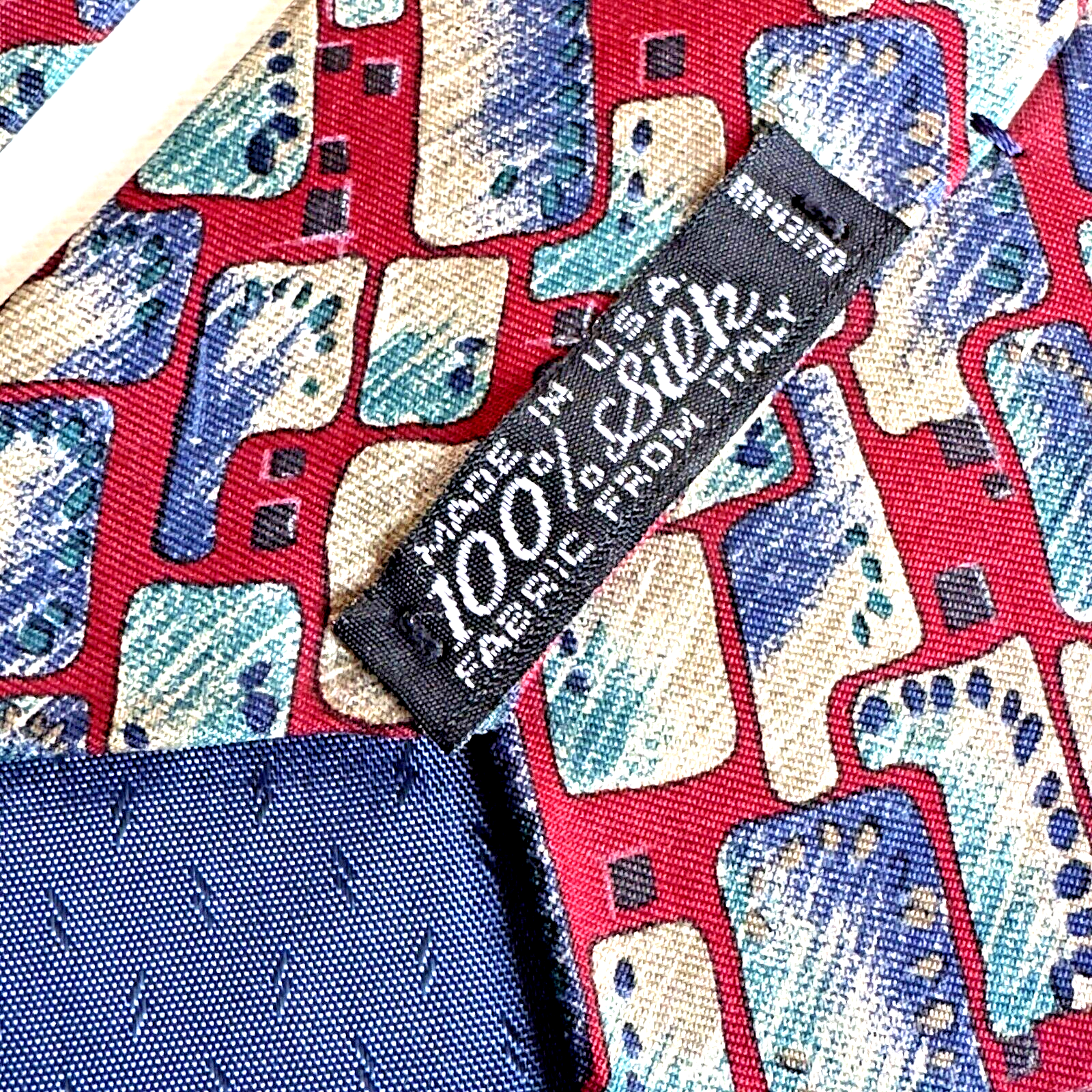 Mens Tie Geometric Organic Made In USA 100% Italian Silk Tie Multicolor 56" x 4"