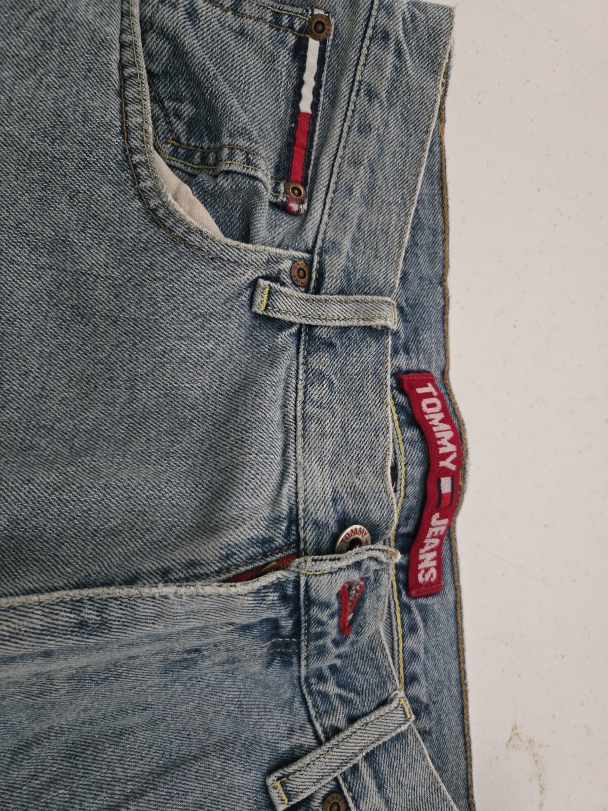 These men's Tommy Jeans are a great addition to any wardrobe. With a solid blue color and a 5-pocket design, these jeans are perfect for any casual occasion. The button closure and regular fit make them comfortable and easy to wear, while the pockets provide practical functionality. These jeans are made by Tommy Hilfiger and are of great quality. They are perfect for any season, whether it be winter, summer, or spring. The straight leg style and USA theme make them a stylish choice for any man. Don't miss out on the chance to add these jeans to your collection! Pants are in good condition, some staining a and tears, see pics Will ship by usps upon receipt of payment, usually the same day or next All offers will be considered